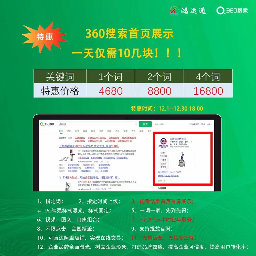 百度、360、搜狗、谷歌排名同步提 升,實現全網首頁霸屏,維護好排 名、持續產單