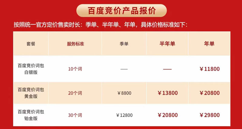 百度競價包年特惠10詞11000,20詞20000,30詞29000